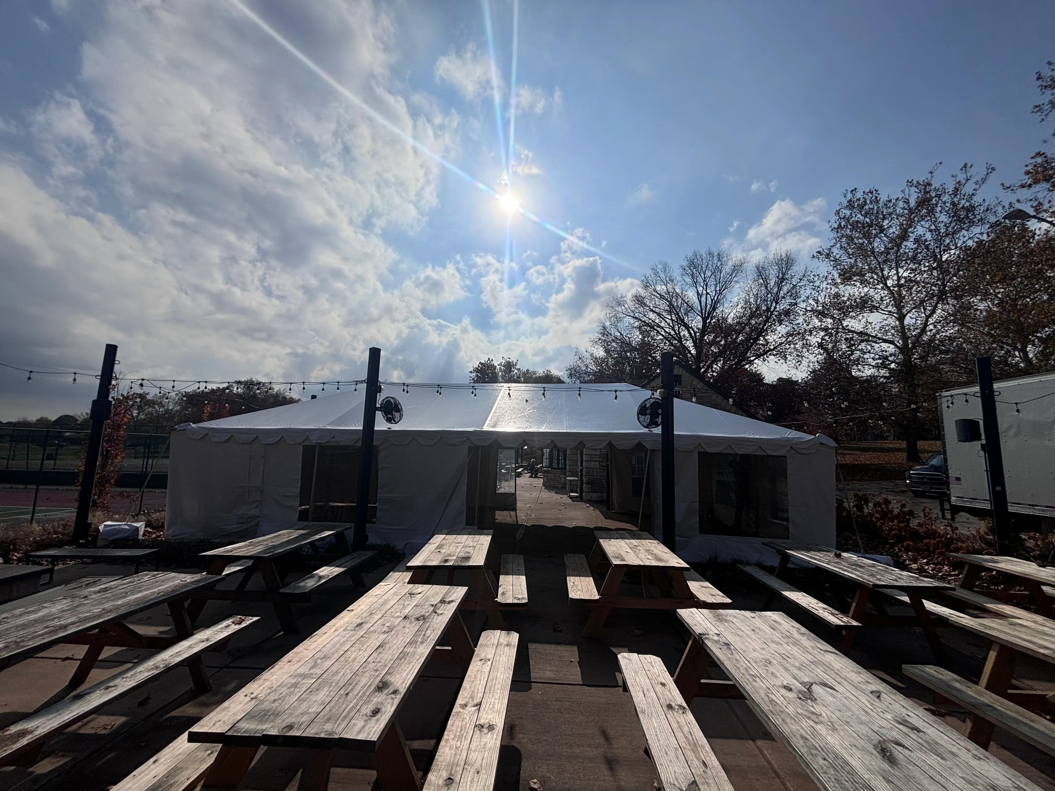 We were contracted by Rockwell to provide tenting, walls, and doors for their iconic South City Beergarten in the park for the winter season.