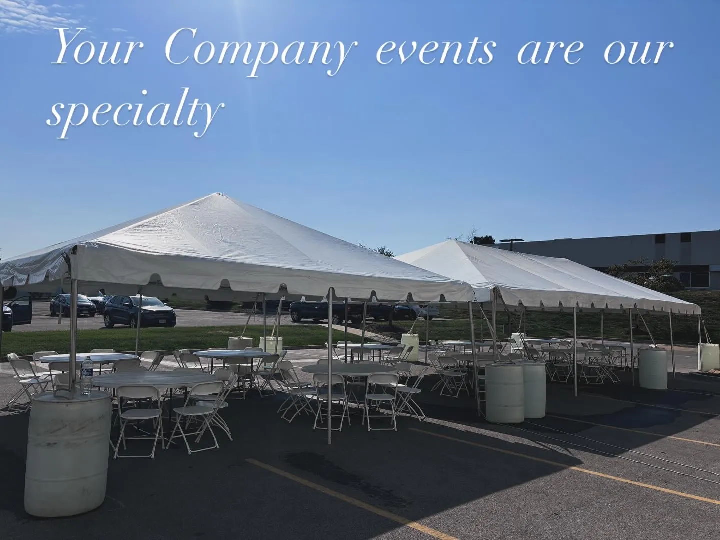 This is it, one of our most common requests. A 20 x 40 Foot tent (or two) one or two dozen tables, hundred or so chairs. An employee appreciation BBQ that we love to partner with.