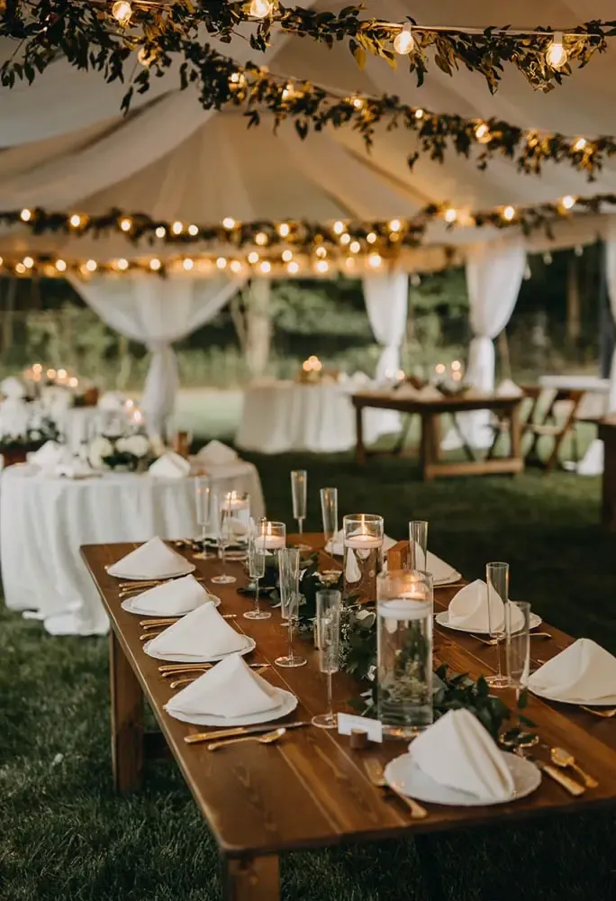Tent Garland comes in various colors and aesthetics - roses of all colors. The garland can be hung around the perimeter of the tent, interlaced with string lights, wrapped around tent legs, and strung from the ceiling in any pattern.
